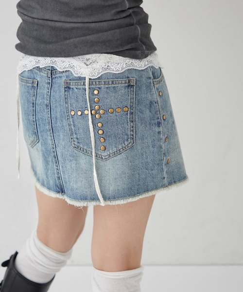 春にぴったり!スタッズが可愛いデニムスカート!■デザイン・ポケットに付いている十字架のスタッズが特徴的なデニムスカート!・加工感あるデザインでヴィンテージ感をプラス。・ジャストな丈感なので、脚長効果抜群!■コーディネート・ 台形のシルエットなので、トップスはコンパクトにしてメリハリあるコーディネートにするのがおすすめ。・ミニの丈感なのでタイツを合わせると一気におしゃれ上級者!・ロングブーツは膝丈のものを選ぶと全体のバランスが取れスタイルよく見えます。※コーディネート着用アイテムは写真下コメントに記載しております。■取り扱い注意※着用時・洗濯時は、必ず取扱い表示・タグをご確認の上、お取り扱い下さい。■その他※撮影環境やご覧のモニター環境によって、実物と多少色味が異なって見える場合がございます。※サイト上のカラー名と、お届け商品に記載されているカラー名が異なる場合がございます。《商品のお気に入り登録》《ブランド登録》がオススメ!■商品のお気に入り登録ハートマークをクリックしてお気に入りに登録。完売カラーの再入荷通知や、ラスト1点の通知、セールやクーポン通知も受け取ることができます。■ブランドのお気に入り登録新商品や再入荷等、いち早くブランドのお得な情報を受け取ることができます。