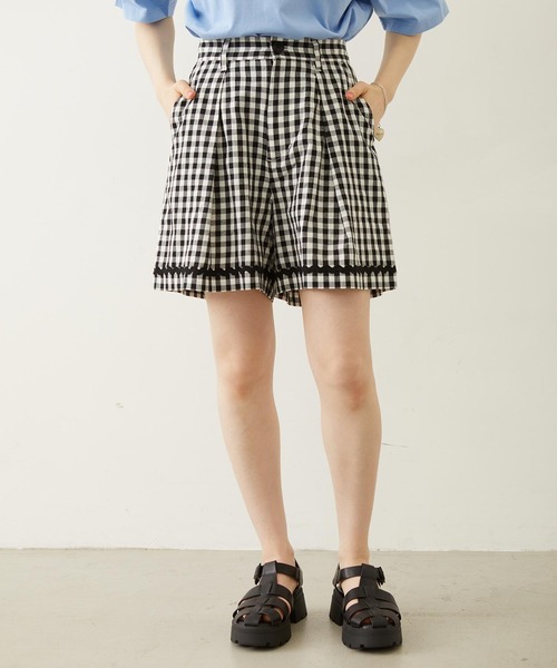 配色のアクセントが目を惹くギンガムチェックのショートパンツ ヴィンテージライクな風合いでこなれ感をプラス 配色の波テープとロゴ入りボタンが、ガーリーカジュアルな雰囲気をプラスするショートパンツ。 洗いざらしたような、がさっとした風合いの生地を使用し、肌触りが良く軽やかな履き心地です。 フロントタックが程よいボリューム感を生み出し、気になるヒップ周りをさりげなくカバー。ウエストはゴム仕様でリラックスした履き心地です。 シンプルなTシャツやブラウスを合わせるだけで、パンツが主役の夏コーデが完成します。 同シリーズのシャツと合わせたセットアップスタイルなら、統一感のあるこなれた着こなしに。 1枚で着映えするので、デイリーコーデの主役になること間違いなし。着回ししやすいアイテムです。 ・透け感:なし ・伸縮性:なし ・生地の厚さ:普通 ・裏地:なし ■同シリーズ (103262014006)TRIMMED GINGHAM CHECK SHIRT (103262051002)TRIMMED RIBBON BOATER HAT 【MILKFED.(ミルクフェド)】 【取り扱い注意事項】 ・アテンションタグ・洗濯表示を必ずご確認の上、ご使用下さい。 ・画像の商品は光の照射や角度により、実物と色味が異なる場合がございます。 また表示のサイズ感と実物は若干異なる場合もございますので、予めご了承ください。 ・商品の色味の目安は、商品単体の画像をご参照ください。 ・画像の商品はサンプルとなります。実際の商品と色味、仕様、加工、サイズ、素材等が若干異なる場合がございます。 ・予約商品など一部商品につきましては、生産の都合上、お届け時期が前後する場合がございます。 《お気に入り登録》のオススメ! ▼商品のお気に入り登録 再入荷通知や、残り1点の通知、セールなどの通知も受け取ることができます。 ▼ブランドのお気に入り登録 新商品や再入荷など、ショップのおすすめトピックスなどお得な情報をいち早く受け取ることができます。