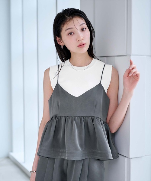 華奢なストラップと立体的なペプラムデザインが目を引くキャミソールトップス。 胸下からふんわり広がるシルエットで、自然にメリハリをつくり女性らしいバランスに仕上げます。 ■Point ・ペプラムデザイン:胸下から広がるフレアシルエットで、女性らしい立体感と華やかさを演出。 ・華奢ストラップ:肩まわりをすっきり見せ、上品で軽やかな印象に。 ・ハリ感のある素材:甘くなりすぎず、大人っぽく着られる上品な仕上がり。 ・体型カバー効果:腰まわりをさりげなくカバーし、身体のラインを拾いにくいデザイン。 ・着回し力◎:1枚で主役級の着映え、Tシャツやカットソーとのレイヤードも楽しめる。 ・セットアップ対応:同素材のパンツと合わせて統一感のあるスタイリングも可能。 ※生産時期により、セットアップの提案をさせて頂いております商品と色差が生じる場合がございます。予めご了承ください。 ■Coordinate ・大人フェミニン:フレアスカートやタイトスカートと合わせて、上品で女性らしいスタイルに。 ・カジュアルレイヤード:Tシャツやブラウスと重ねて、程よく甘さを抑えた大人カジュアルに。 ・セットアップスタイル:同素材のパンツと合わせれば、統一感のあるワンランク上の着こなしに。 ※当商品は機械による生産の過程上、どうしても"生地を織る際の糸の継ぎ目"や多少の"ほつれ"、他繊維の"混紡"、また、形やサイズや柄に多少の"誤差"が生じる場合がございます。 ※サイズは、実寸サイズを測っているため多少誤差がでる場合があります。製造工程の関係上、各採寸箇所実寸(平置き)より【約-3cm~+3cm】程度は誤差の許容範囲とさせて頂いておりますので、予めご了承くださいませ。 ※メーカーより密封状態で入庫し、検品時に再度袋詰めを行っておりますが、素材により染料等の臭いが強い場合がございます。 ※発送上の状態によって商品がシワになる場合がございます。 ※商品により色落ち・色移りがある場合がございますので、品質表示をご確認の上、お取り扱いにご注意くださいませ。 【伸縮性】斜め方向に多少あり 【透け感】なし 【ご購入前に必ずご確認ください】 生産時期により、予告なくデザインの仕様やカラーの色味、素材が変更される場合がございます。 商品により、色落ち・色移りがある場合がございます。 濃色品は、色移り等を防ぐため着用前に単独で洗うことをお勧めします。 この製品は素材の特性上引っ掛けが生じやすい面があります。表面の粗い物に擦ったり、バッグやベルト、先の鋭い物にひっかけますとささくれや糸が浮き易く、切れる事もあります。着用、着脱の際はベルト、バッグ、アクセサリー等の金具や突起物にご注意下さい。
