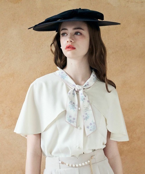 ■デザインポイント 繊細な水彩タッチのスミレプリントがフェミニンなブラウス。 映画に登場する女性が着ていたフラワープリントのケープ使いワンピースからインスパイアされた一品。 ふんわりとしたケープのデザインが上品でありながら夏まで長く着こなせるポイント。 ■オススメスタイリング 程よくカジュアルダウンさせたデニムのフレアースカートと合わせて着こなしたり、スカーフのカラーと色味を揃えたレトロなカラースカートと合わせた着こなしがオススメです。 お揃いのスミレモチーフの刺繍バッグと合わせてムードたっぷりに仕上げて ====== 透け感:なし 裏地:なし 生地感: ふつう ==== ※洗濯は中性洗剤を使用してください。※アイロンは当て布を使用してください。 ▼an another angelus/アンアナザーアンジェラス 『パリの裏通りにひっそりとたたずむ小さな隠れ家。その扉を開けると…』 懐かしくも新しいレトロ感をレディライクに表現し、大人の女性のワードローブを提案。 50年代パリのメゾンからインスパイアされたモードなシルエットやクチュール感のあるディティールにこだわった「Mode of classic」のアイテムも展開中です。 ▼Fint/フィント 50~70年代のクラシカルなヴィンテージデザインに トレンド感をプラスしたレトロ&ガーリースタイルをお届け。 古着屋で一点ものを見つけるような【ときめき】を感じられるブランドです。 ▼商品のお気に入り登録▼気になるアイテムの♡をクリックしてお気に入り登録すると残り1点の通知、完売カラーアイテム再入荷の通知、お得な通知が届きます。 ▼ショップお気に入り登録▼ ショップからの新作商品やお得なイベント情報など、いち早くブランドからの情報を受け取ることができます。