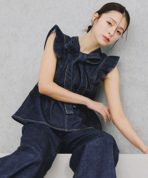 SOMETHING×JILL by JILL STUART 別注アイテム 襟元のボウタイや裾のぺプラム、さりげないフリル袖がポイントのフェミニンなトップス。 気になる二の腕をカバーしながら可愛らしさも叶えます。 サムシング定番のストレッチ性のある着心地の良いデニム生地を使用。 同素材のパンツ(ブランド品番125-6130030)とのセットアップがおすすめ。 カラーは、キレイめの濃色ワンウォッシュと、色落ちデニムにピンクを重ねた2色展開です。 ※撮影時照明の関係により、色味が違って見える場合がございます。 またパソコン・スマートフォンなどの環境により、若干製品と画像のカラーが異なる場合もございます。予めご了承ください。 商品の色味は、商品単品画像をご参照下さい。 ※商品画像はサンプルのため、色味やサイズ等の仕様に変更がある場合がございますので、予めご了承ください。 ◆お買い物をよりお楽しみいただくために◆ ・「商品のお気に入り登録」で完売カラーの再入荷やラスト1点、セール通知を受け取ることができます。 ・「ブランドのお気に入り登録」で新商品の入荷情報など、いち早く受け取ることができます。