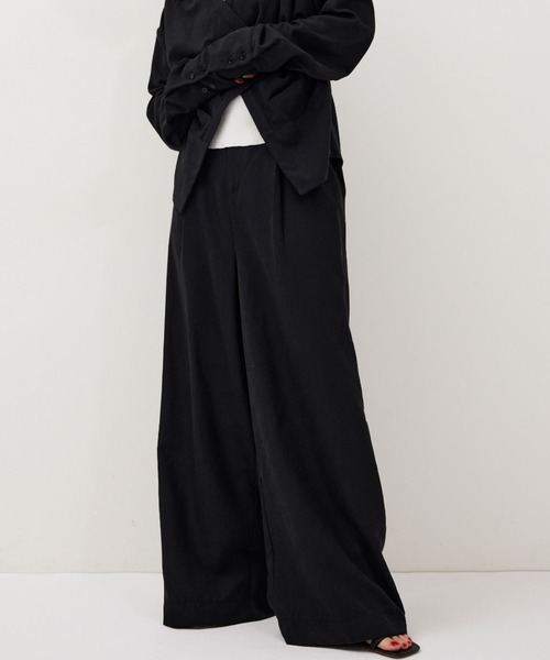 【Design】 カシュクールシャツと同素材で仕立てた1タックセミワイドパンツ。 フロントのタックが立体感を生み、程よくゆとりのあるセミワイドシルエットに仕上げました。 生地には、薄手ながら程よいハリのあるピーチスキン素材を使用。 表面にほんのり起毛感のあるなめらかな質感が特徴で、軽やかさとモードな雰囲気を兼ね備えた一本です。 後ろウエストはゴム仕様で、リラックス感のある履き心地に。 ベルトループも備えているため、ベルトを合わせたスタイリングも楽しめます。 【Styling Point】 同素材のカシュクールシャツと合わせたセットアップスタイルがおすすめ。 シンプルなトップスを合わせるだけでも、程よくモードな雰囲気に仕上がります。 タック入りのシルエットが脚のラインをきれいに見せ、幅広いスタイリングに活躍するアイテムです。 【Detail】 裏地:なし 透け感:なし 伸縮性:なし 光沢感:ややあり 生地の厚さ:やや薄手 【取扱い】 手洗い可(液温は40℃まで、非常に弱い操作)/漂白不可/タンブル乾燥不可/日陰で平干し推奨 アイロンは低温で当て布使用/石油系溶剤による弱いドライクリーニング可/非常に弱いウェットクリーニング可 【Color】 ベージュ ネイビー 【Size】 S / M 【About Brand】 「HANNE(アン)」 強さとしなやかさが交差するスタイル。 構築的なモードに、さりげなく女性らしいシルエットを重ねたリアルクローズ。 インスタグラムではスタイリングや新作アイテムの情報を更新中! ぜひチェックしてみてください◎ → @hanne.official_jp -------------------------------------------------- ▼商品のお気に入り登録 完売カラーの再入荷、人気アイテムのラスト1点、プライスダウンしたセールなどの通知を受け取ることができます。 ▼ブランドのお気に入り登録 新商品や再入荷、ショップのおすすめトピックスなど、いち早くブランドの情報を受け取ることができます。 --------------------------------------------------- ※撮影画像はサンプルを使用しているため、実際の商品とカラー、仕様、加工、サイズが若干異なる場合がございます。 使用しているパソコンや携帯電話により、実際のカラーと異なって見える場合がございます。予めご了承ください。