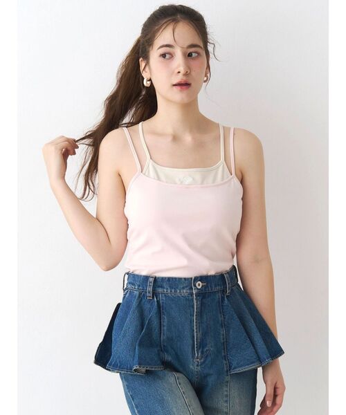 【CALNAMUR】2026 Summer 【Design】 キャミソールを2枚重ねたようなレイヤードデザインが特徴のキャミトップス。 1枚で着映えするデザイン性と、インナーいらずの実用性を兼ね備えたアイテムです。 表側のキャミに、内側の配色キャミを重ねたデザインで、肩紐や胸元から覗くレイヤード感がスタイリングのアクセントに。 バックスタイルはクロスストラップ仕様になっており、後ろ姿まで抜かりなく仕上げています。 胸元にはさりげなくロゴ刺繍を施し、シンプルな中にcalnamurらしいポイントをプラス。 パット付き仕様のため、1枚で安心して着用可能。 伸縮性のある素材を使用しており、フィット感がありながらも快適な着心地です。 デニムやカーゴパンツと合わせたカジュアルなスタイリングはもちろん、シアートップスやシャツのインナーとしても活躍。 レイヤードを楽しみながら、夏のコーディネートに幅広く取り入れられるキャミソールです。 【商品特徴】 透け感:なし 伸縮性:あり 生地の厚さ:普通 サイズ感:普通 裏地:なし ポケット:なし -------------------------------------------- 【CALNAMUR/カルナムール】 ブランドコンセプトは『優美な野心家』 それぞれが秘めている野心や希望、憧れを洋服として生活の一部に取り入れてもらえるよう、幅広いライフスタイルの方に着ていただけるブランド。 どこか可愛く、どこかヘルシー、ファッションを楽しみたい日のとっておきのワタシにプラスのAMOURを。 クリエイティブディレクター/藤田ニコル -《お気に入り登録》でお得な情報がいっぱい- ・商品のお気に入り登録 完売カラーの再入荷通知や、ラスト1点、セールの通知をお知らせいたします。 ・ブランドお気に入り登録 新商品や再入荷など、いち早くブランドの情報を受け取ることができます。 ≪Shopping Info≫ ※掲載画像の商品の色味は、屋外や屋内の光の照射や角度により実物と色味が異なる場合がございます。 スタジオでの詳細画像をご参照ください。 ※サンプルでの撮影の為、色味や仕様の変更点ございます、ご了承ください。 ※システムの都合上、販売価格と下げ札に1円誤差が生じる場合がございます。ご了承の上、ご購入をお願い致します。 ※生産の過程で1~2cm前後の個体差が生じる場合があります。 ※ご注文いただいた予約商品のお届け時期の確認は、注文履歴ページより行えます。