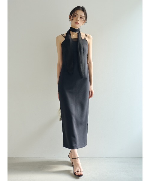 きちんと見えと着心地を両立した、大人な抜け感を纏えるワンピース ■ Design 表面感のあるシアー素材をレイヤード風に落とし込んだ、抜け感が魅力のワンピース。 伸縮性のあるダブルストラップは長さ調節が可能で、体型やお好みのフィット感に合わせてバランス良く着こなせるのも嬉しいポイントです。 大胆に開いたバックスタイルが、ヘルシーで女性らしい肌見せを叶え、後ろ姿まで美しく印象的に。 取り外し可能なカップイン仕様で、インナーに悩まず一枚で着用可能。 リラクシーな着心地ときちんと感を両立します。 さらに、胸元と同素材のシアースカーフ付き。巻き方次第でモードなアクセントをプラスし、スタイリングの幅を広げます。 ■ Fabric 滑らかで微光沢のある表面感で、カットソーながらエレガントな印象のダンボール素材。 程よく厚みのある生地でインナーのラインを拾いづらく、伸縮性にも優れているので着心地も抜群です。 ■ Coordinate 一枚でモードにご着用いただくのはもちろん、胸元に抜け感があるのでジャケットなどの羽織りもバランスよくコーディネートが出来ます。 着心地のいい素材感ながらもしっかりとした印象を与えてくれる仕立てで、オケージョンシーンにもおすすめです。 =================================== 裏地:なし 透け感:なし 光沢感:ややあり 伸縮:あり ケア方法:手洗い ===================================