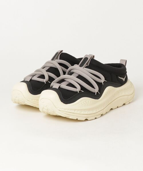 The Rundown 休息時も、より快適に。 ORAシリーズのランニング後の足を癒やすためのリカバリー機能を継承し、未来的なシルエットにデザインされたORA PRIMO(オラ プリモ)。 ソフトなニットカラー、ストレッチレースシステム、中綿入りアッパーを採用し、季節を問わないスリッポンで快適な履き心地を追求しています。 ※ 使用注意事項:ランニング後のリカバリー、リラックス時の着用を目的とした商品です。ランニングなどの運動時の着用は推奨しません。 ※ 素材の特徴上、炎天下や直射日光の当たる場所、高温多湿の場所での放置は避けていただくことをお勧めします。変形や変色する恐れがあり、機能の低下の原因となります。 ※ ご試着の際は製品タグを外さず、ソックス等をご着用のうえ室内でお試しいただきますようお願いいたします。 ※ こちらの商品は、調光調色や光の当たり方によって色味が異なって見える場合がございます。 ※ ご利用のモニターによって、色調・風合いなど実際の商品との違いが生じる場合がございます。予めご了承ください。 用途 リカバリー ライフスタイル 特徴 【アッパー】 中綿入りアッパー ニットカラー ジグザグステッチディテール ストレッチレースシステム つま先を保護するトゥバンパー 反射素材バードロゴブランディング バンプとヒールウェビングにジグザグステッチ レースループの反射素材HOKAブランディング ヒールウェビングに反射素材 【アウトソール】 30%リサイクルラバーアウトソール