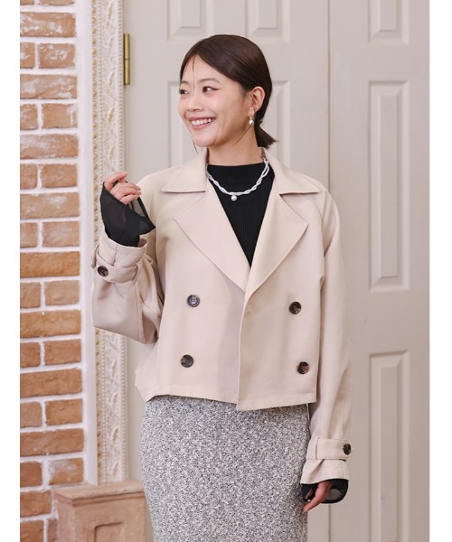 都会的な抜け感を演出する、軽やかなショート丈トレンチコート。伝統的なトレンチのディテールをミニマルに削ぎ落としたデザインは、サッと羽織るだけで洗練された大人の表情を引き立てます。重たくなりがちな春コートですが、ショート丈に仕上げることで、ロングボトムスやワンピースともバランス良く合わせられる汎用性の高い軽アウターに。【ロングトレンチスカート】とセットで着られるため、上下で合わせた統一感のあるセットアップスタイルなら、より品格のあるモードな装いが完成します。季節の変わり目のメインアウターとして、デイリーからオフィスカジュアルまで幅広く活躍する、ワードローブに欠かせない一着です。
