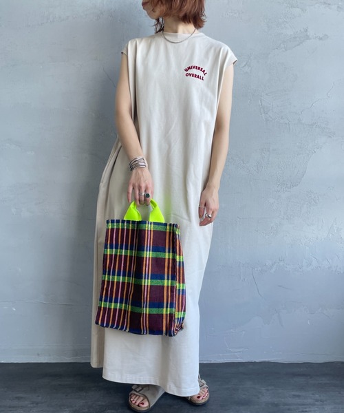 【WEB先行予約】[UNIVERSAL OVERALL/ユニバーサルオーバーオール]フロッキーワンポイントロゴ ノースリーブ マキシ丈ワンピース