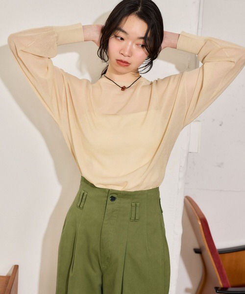 ーーー 透け感が美しいシアーニットで、リラックス&おしゃれを両立 ■point ・ドロップショルダーのデザインで、リラックス感のあるシルエット ・腰回りをカバーするチュニック丈で、体型をさりげなくカバー ・手首は太めのリブ仕様で、袖丈を調整可能 ・繊細な透け感のあるシアー素材で、インでもアウトでも着こなせる万能デザイン ーーー ■styling 透け感のあるニットなので、キャミやアメスリタンクなど様々なインナーでコーディネートが可能。 タンクトップを上から重ねるレイヤードコーデも上級テクとしてお勧めの着こなし! ボトムスはミリタリーやデニムなどカジュアルボトムにINしてすっきり、 スカートにさらっとアウトで合わせた着こなしもリラックス感があり春夏ぽい印象に。 【INFOMATION】 ■商品のお気に入り登録 完売していても再入荷時に再入荷通知を受け取ることができますので、是非ご登録ください! ■ブランドのお気に入り登録 新商品や再入荷などの情報を受け取ることができますので、是非ご登録ください! ※ご注文いただいた予約商品のお届け時期の確認は、注文履歴ページより行えます。 ※屋外の光や照明の当たり具合で、実際の商品の色味とカラー別画像の色味に若干の違いが発生する場合がございます。 詳細画像と併せてご確認の上、ご注文いただきますようお願い致します。
