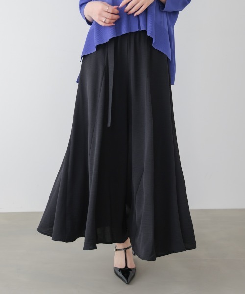 ■POINT 腰まわりをすっきり見せるポイントベルトがアクセントになり、トップスをインするだけでコーディネートが完成。裾に向かって広がるフレアーシルエットが、動くたびに女性らしい表情を生み出します。生地分量にゆとりがあり、脚のラインを拾いにくく、体型カバーにもおすすめ。 ■FABRIC 接触冷感・UVカットにイージーケアをプラスした、お手入れしやすい素材。麻のようなドライタッチの素材を使用し、さわやかな着心地に仕上げました。肌にまとわりつきにくく、暑い季節も快適。見た目はナチュラルながら、やわらかさもあり、毎日着たくなる軽やかさです。季節の変わり目にも活躍する、頼れる一枚です。 ………………… 透け感:なし 裏地:ECRUのみ有 ………………… ★商品のお気に入り登録 登録すると、完売しても再入荷時に通知を受け取ることができます。 ほかにもお得な特典があるかもしれません♪ ★ブランドのお気に入り登録 新商品や再入荷などの情報を受け取ることができますので、是非ご登録ください♪