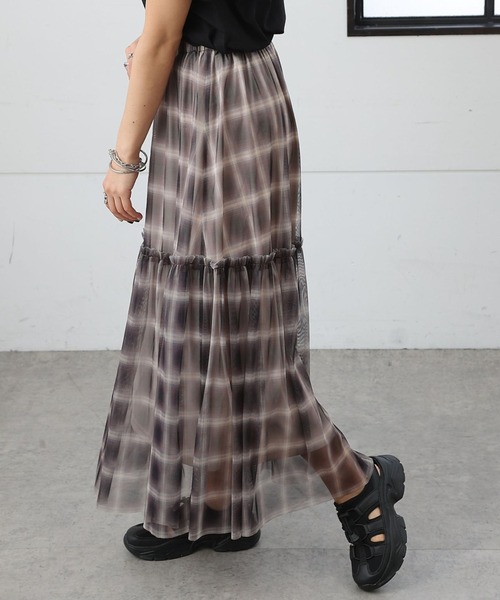 【春らしい軽い素材が魅力なチュールスカート】 チュール素材で季節感を取り入れられるチェックチュールスカートです。 ウエストは総ゴム仕様になっているので締め付け感も軽減しストレスフリーな穿き心地です。 また、裏地付きで透け感の心配もない点も嬉しいポイント◎ 裏地は脛あたりまでの長さになるので、足首部分ではチュール特有の透け感も楽しめるデザインになっています。 明るめのカラーを使用した展開になっているので、チュールの生地感と相まって春らしさを楽しめるデザインです。 真ん中にあるフリルの切り替えがアクセントになっているのでシンプルなトップスとも相性抜群です。 【商品ポイント】 ・軽い生地感でコーディネートに季節感をプラス ・総ゴム仕様のウエストでストレスフリー ・ふんわり広がるシルエットがかわいい ---------------------------------------------------- ■商品特徴 洗 濯 方 法 :手洗い可 裏 地 :あり 透 け 感 :あり 伸 縮 性 :なし 光 沢 感 :なし 生地の厚さ:普通 ---------------------------------------------------- ■素材 表地: ポリエステル100% 裏地: ポリエステル100% ---------------------------------------------------- ※着用、お取り扱いの際は、商品についている品質表示とアテンションタグを必ずご確認下さい。 ※商品タグに記載されている商品名がWEBでの表記名と異なる場合があります。 ※実際の商品と仕様、加工、サイズが若干異なる場合がございます。 ※照明の関係により、実際よりもやや明るく見える場合がございます。 またパソコンなどの環境により、若干製品と画像のカラーが異なる場合もございます。予めご了承くださいませ。 【お気に入り登録】してお得な情報をCHECK!! ・「商品のお気に入り登録」で再入荷通知や、ラストの通知、セール通知も受け取ることができます。 ・「ブランドのお気に入り登録」で新商品や再入荷など、お得な情報を受け取ることができます。