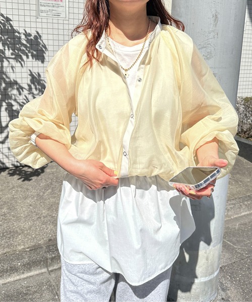 軽やかな透け感が魅力のシアー素材を使用したブルゾン。 程よいハリと柔らかさを兼ね備えた素材で、スタイリングに抜け感をプラスしてくれる1枚です。 ふんわりとしたボリュームスリーブがデザインのポイント。 袖に立体感を持たせることで、シンプルなコーディネートでも華やかな印象に仕上がります。 裾にはドローコードを施しており、シルエットの調整が可能。絞って丸みのあるシルエットにしたり、ラフにストレートで着たりと、スタイリングに合わせてアレンジを楽しめます。 シアー素材なので重たく見えず、春夏の軽い羽織りとしても活躍。 キャミソールやタンクトップの上にさらっと羽織るだけで、トレンド感のあるコーディネートが完成します。 デニムやスラックスと合わせたカジュアルスタイルはもちろん、ワンピースやスカートと合わせた女性らしいスタイリングにもおすすめ。 カラーはスタイリングを柔らかく見せる アイボリー、コーディネートのアクセントになる イエロー、シックで合わせやすい ブラックの3色展開です。 軽く持ち運びもしやすく、季節の変わり目にも活躍する万能ブルゾンです。 ・・・・・・・・・・・・・・・・・・・・・・ 透け感:あり 裏地:なし 伸縮性:なし 生地の厚さ:薄手 ・・・・・・・・・・・・・・・・・・・・・・ 【PILIT】2025.03 START SPICEARE ADDED TO YOUR DAIRY LIFE ✓ 常に遊び心を忘れず、日常の中にPILIT〝ピリッと〟ちょっとしたスパイスの彩りを。 マンネリ化しやすい普段の洋服やコーデの中でPILITのitemがちょっとした新しさをプラス出来るスパイスになってもらえれば… #カジュアル#カラフルの要素に大人韓国テイストをMIXしたブランドです。 公式Instagramアカウント @pilit_official新作情報をはじめ多彩なコンテンツを掲載しております。ぜひご覧くださいませ。 【注意事項】 ※画像の商品はサンプルです。実際の商品と色味、仕様、加工、サイズ、素材等が若干異なる場合がございます。 ※商品を使用前に、タグ等に記載されている「取り扱い上の注意書き」、「洗濯表示」を必ずご確認ください。 ※商品画像は、光の当たり具合やパソコンなどの閲覧環境により、実際の色味と異なって見える場合がございます。予めご了承ください。 【商品のお気に入り登録】再入荷、残り1点、セールなどの通知を受け取ることができます。 【ブランドのお気に入り登録】新商品や再入荷など、ショップのおすすめトピックスなブランドの情報をいち早くお知らせします!ぜひご登録ください。 Director’sselect itemこちらのアイテムは、ブランドディレクターがブランドの世界観に合ったものをセレクトした商品になります。