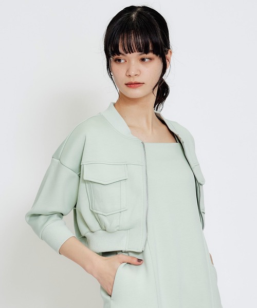 ラフすぎない、ちょうどいい羽織 配色ステッチがさりげないアクセントが入った、モード感漂うバイカラーステッチシリーズのブルゾン。同シリーズの丈が選べるワンピースとセットで着用することで統一感のある洗練されたスタイリングが完成します。ブルゾンはコンパクトな丈感と立体的なポケットデザインがポイント。カットソー素材ならではの柔らかな着心地で、軽く羽織れるアイテムに仕上げています。袖口と裾の切り替えがメリハリを生み、バランスよく着こなせるのも魅力。デザイン性と着心地を兼ね備えた、デイリーに活躍するREDYAZELらしいアイテムです。 【バイカラーステッチシリーズ】 バイカラーステッチカットミニワンピース 商品番号:20022615500122 バイカラーステッチカットロングワンピース 商品番号:20022615500121 透け感:[アイボリー]ややあり [他カラー]なし 裏地:なし 伸縮性:あり 生地の厚さ:普通 F:着丈41cm 身幅50cm 肩幅53cm 袖丈32cm