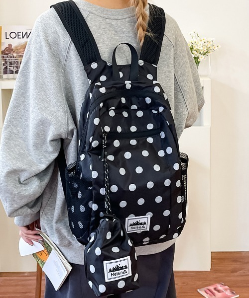 -おすすめポイント♪- トレンドのドット柄がポイントのパッカブルナイロンリュック 今季注目のドット柄を全面に取り入れた、コーデの主役になるリュック!ランダムな水玉デザインがカジュアルながらも抜け感を演出し、シンプルなスタイリングにプラスするだけで一気に旬顔に。 コンパクトに折り畳めるパッカブル仕様で、使わないときもスマートに持ち運び可能◎ 軽量で扱いやすいナイロン素材を使用。デイリーはもちろん、旅行やサブバッグとしても活躍するタフさと機能性が魅力◎ さらっとした質感で季節問わず使いやすいのもポイント! スウェットやデニムのラフコーデに合わせてストリート感をプラスするのがおすすめ♡ワンピースやスカートに合わせれば、甘さのあるドット柄がアクセントになり、こなれたミックススタイルに。シンプルコーデに“柄で遊ぶ”今っぽいスタイリングにぴったりのアイテムです。 -お買い物をお楽しみいただくために- ◆Instagram◆ lacvert_official 新作情報やルックを配信中 ◆この商品が気になったらお気に入り登録 完売カラーの再入荷通知やセール情報、ラス1情報などの通知を受け取ることができます♪ ◆LAC VERTをお気に入りブランドに登録 新商品や入荷情報を受け取ることができるので、いち早く新作をチェックできます!是非ご登録してくださいね♪ ※撮影時のライティング、ご覧になっているモニター・PC環境により、実際の商品と色味が異なって見える場合がございます。予めご了承をお願い致します。 韓国 韓国ファッション 韓国風 大人 韓国通販 かわいい 可愛い おしゃれ オシャレ プチプラ トレンド 量産型 通勤 通学 ペアルック プチプラ 大人かわいい 春服 夏服 大人カジュアル ミニバッグ ショルダーバッグ 大容量 ドット ドット柄 ドッド リュック ナップサック スポーティー スポーツ フェス アクティブ ナイロン