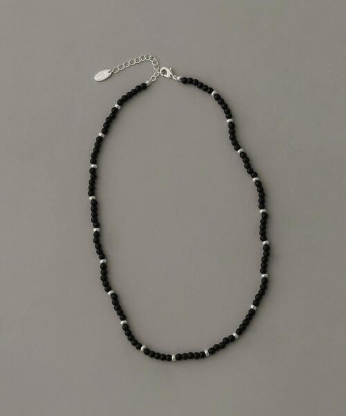 【落ち着いた黒にシルバーが映える】 ●落ち着いた雰囲気のブラックビーズに、シルバーのアクセント ●主張しすぎないシルエットで首元に自然に馴染む ●ビーズのカジュアルさとブラックのシックさを両立したデザイン ブラックのビーズにシルバーのパーツを挟んだデザインのネックレス。 これ一本でさらりと着けるのはもちろん、お手持ちのシルバーネックレスと重ねて、質感の違いを楽しむスタイリングもおすすめです。 いつものコーディネートに物足りなさを感じたとき、パッと手に取りたくなるような、使い勝手バツグンの頼れる一本です。 【2026 Spring/Summer】【26SS】 ※金属アレルギー症状が出にくいチタン、ニッケルフリー素材、ステンレス等を使用しています。すべての方にアレルギーが起こらないということではありませんので、万が一アレルギーの症状が出ましたら直ちに使用を中止してください。 ※メッキ製品(特に銀メッキ)は変色しやすいため、こまめなお手入れで防止してください。長期放置やスプレー香料などの同時使用は、特にお避けください。 ※メッキ製品は、アレルギー体質の方や体調が低下している方など、かぶれることがあります。肌に異常を感じた時はご使用をお止めいただき専門医にご相談ください。 ※アクセサリーは壊れやすいものです。取り扱いに注意していただき大切にご使用いただけるようお願い申し上げます。 総重量 : 約13.5g ※商品画像は、光の当たり具合やパソコンなどの閲覧環境により、実際の色味と異なって見える場合がございます。予めご了承ください。 ※商品の色味の目安は、商品単体の画像をご参照ください。 ▼お気に入り登録のおすすめ▼ お気に入り登録商品は、マイページにて現在の価格情報や在庫状況の確認が可能です。 お買い物リストの管理にぜひご利用下さい。 -