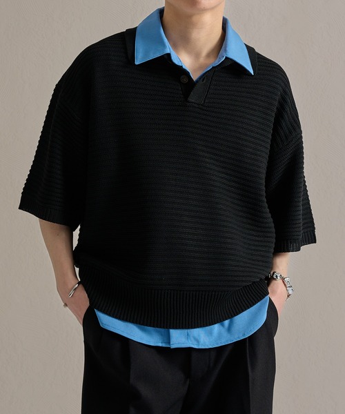 ------------------------------------------------------ 【epnok / エプノック】 毎週(金)に新作をリリース 新作情報はInstagram公式アカウントからチェック! ↓ 【@epnok_official】 ------------------------------------------------------ 大人気のアイテムが半袖になって登場。 夏でも無難にならないシンプルなニットポロ。 ◆差別化できるガーター編み ◆無地とメランジの編地をアソート ◆メランジは襟を配色デザインに ◆ゆったりとしたルーズシルエット 【生地】 シャリ感のある麻タッチの糸を採用。 立体感のあるガーター編みで肌離れが良く、夏でも快適に着て頂けます。 【デザイン】 ガーター編みによる畝目が無地以上柄未満のさりげないデザイン。 ボタン2つの浅めのポロデザインできれいめに着こなして頂けます。 ボタンにはダークトーンのマーブルボタンを採用。 襟配色はボディと同系色にし、着こなしやすいカラーリングに仕上げました。 襟からシャツをレイヤードすることでトレンドの着こなしを楽しんで頂けます。 【シルエット】 身幅をゆったりさせつつも着丈は短めに仕上げたepnokのルーズシルエット。 身長や体型を問わず幅広い方に着て頂けるよう、オーバーなサイジングとすっきりとした見た目を両立しました。 程よいドロップショルダーとゆったりとしたアームのシルエットでこなれた雰囲気を演出しました。 【epnokの身長別推奨サイズ】 〜165cm Sサイズ 166〜167cm S or M 168〜173cm Mサイズ 174〜175cm M or L 176cm〜 Lサイズ 【epnok / エプノック】 日常の何気ない一瞬をも引き立てる。 「epnok」は“当たり前”に遊びを効かせた、 ベーシックなモダンスタイルを提案します。 -オフィシャルInstagramにて最新情報や限定情報を毎日更新中!- ▼商品のお気に入り登録 完売カラーの再入荷通知や、ラスト1点、セールの通知をお知らせ致します。 ▼ブランドお気に入り登録 新商品や再入荷など、いち早くブランドの情報を受け取ることができます。 ※サイトに表示されているカラー名と実際のお届け商品に記載されているカラー名が異なる場合がございます ※ご覧いただく環境により、実物と色味が異なって見える場合がございます。 ※同商品でも、生産の過程で1~2cmの個体差が生じる場合があります。