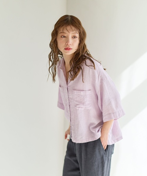 肌触りの良いリネン素材のショート丈シャツ ーーー ★おすすめポイント★ [1]肌当たりの優しいリネンレーヨン素材 [2]春夏にぴったりなカラー展開 [3]様々なボトムスに合わせやすいショート丈 [4]ワイドシルエット ーーー [fabric] リネンレーヨン素材でリネンの粗野感もありながら、肌アタリの優しい素材が特徴。 緯糸が麻100%とRY/麻のブレンド糸を交互に配置してるのが素材の特徴。 ジンジャーイエローストライプやミントストライプとグレーストライプに加え、ライラック無地が差しカラー。 [design] ショート丈のやや大きめワイドなシルエットがポイント。 胸ポケットがアクセントに。 脇裾はスリット入り。 [styling] ワンピースの軽い羽織りやワイドパンツのトップスとしてコーデがおすすめ。 ※屋外での撮影画像は光の加減で実際の商品より明るく見えたり、風合いが異なって見える場合がございます。 商品の色味はスタジオ撮影の画像を参考にして下さい。 ------------------------------------- ≪お買い物をよりお楽しみいただくために≫ ◆商品のお気に入り登録(ハートマークをクリック) 完売カラーの再入荷通知や、完売間近の通知、セールの通知も受けることができます。 ◆ブランドのお気に入り登録 新商品や再入荷など、いち早くブランドのお得な情報を受け取ることができます。 -------------------------------------