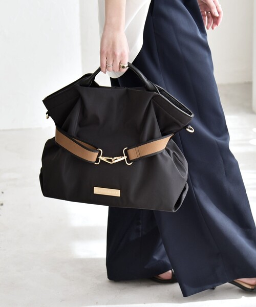 2026SS quaranciel トレンドのラインテープが目を惹く、アレンジ可能なオンオフ兼用トート ●デザイン ラインテープがデザインポイントになったトートバッグ。 合成皮革のハンドル部分は、持ち上げると自然とくったりとした台形フォルムになり、こなれ感のあるシルエットに。 ベルトは本体に巻き付けるのはもちろん、外してサイドの金具に付ければショルダーベルトとしても使える2way仕様。 長さ調整もできるので、ワンショルダーでも斜め掛けでも使えて幅広いシーンで活躍します。 A4サイズが収納可能な大容量で、通勤や通学、旅行などにも使えるアイテムです。 ●仕様 ポケット:内側に2つ ※EC限定レーベルのため、店舗での展開はございません。 ※この製品は摩擦や水濡れにより、色落ちの心配があります。雨天でのご使用や薄色の衣類を着用の際には特にご注意ください。また、長時間濡れた状態で他の物と重ね合わせないでください。 ※この製品は、落下や衝撃の際の内容物の保護はできません。内容物が破損しやすい物や著しく重い物、または鋭利な物の場合は、通常の使用の場合でも製品を破損する恐れがありますのでご注意下さい。 ※照明の関係やパソコン・スマートフォンなどの環境により、色味が多少異なって見える場合があります。商品の色味は、詳細の生地アップ画像をご参照ください。 ※末永く愛用頂く為に、アテンションタグ・洗濯ネームを必ずご確認の上、着用又はお取り扱い下さい。 ※画像の商品はサンプルです。 実際の商品と仕様、加工、サイズが若干異なる場合がございます。