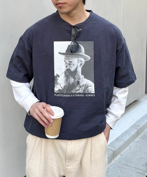 ドライタッチな着心地が特徴的な 着るだけでおしゃれに見える”主役級”フォトTEE ■デザイン 前面に施された繊細なプリントが目を惹くTシャツ。 ざらっとしたスラブ生地にプリントすることで、よりアートな印象の大人のフォトTシャツに仕上げました。 カラーによってプリントが異なるので、違った雰囲気を楽しむことができます! 1枚でサマになる、着回し力抜群のTシャツです。 ■スタイリング ボトムスはデニムやチノパンなど、定番アイテムとの相性抜群。 カジュアルに着こなすなら、Tシャツをラフにタックアウトして、スニーカーを合わせるのがおすすめです。 少し大人っぽく着こなすなら、Tシャツをボトムスにインして、ローファーやサンダルを合わせるのがおすすめです。 Tシャツのグラフィックが活きるようにアクセサリーは、シンプルなネックレスやピアスをプラスすると、より洗練された印象になります。 ■推奨サイズ 【~170cm】Mサイズ 【171cm~】Lサイズ ※XXLサイズはWEB限定です。 ■お手入れ方法 洗濯:40℃を限度とし、手洗いができる アイロン:アイロン仕上げは禁止 タンブル乾燥:タンブル乾燥禁止 ・・・・・・・・・・・・・・・・・・・・・・ 透け感:なし 裏地:なし 伸縮性:なし 光沢感:なし 生地の厚さ:普通 ・・・・・・・・・・・・・・・・・・・・・・ ▼気になる商品をお気に入り登録 ハートをクリックして《お気に入り登録》がオススメです! 入荷情報や、クーポン情報が通知されるようになります。 ※画像の商品はサンプルを使用しております。実際の商品と若干の仕様が変更になる場合がございますので、予めご了承の上ご注文くださいますようお願いいたします ※屋外の光や照明の当たり具合で、実際の商品の色味とカラー別画像の色味に若干の違いが発生する場合がございます。詳細画像と併せてご確認の上、ご注文いただきますようお願い致します。 ※独自のタイムセールなどの施策により、実店舗と価格差が発生する場合がございます。 ※実際の店舗在庫につきましては、各店舗に直接お問い合わせください。