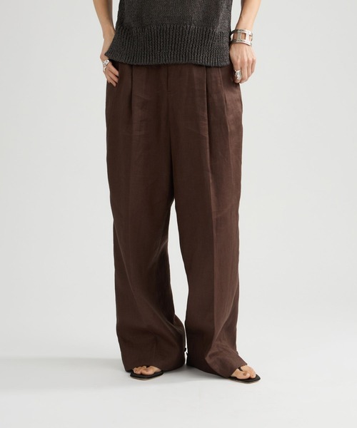 裾のタブで表情を変えるリラクシーな麻のワイドストレートパンツ ーーー -Design- ・セットアップでの着用可能。 ・全体はややゆとりのあるワイドストレートシルエットを採用。 ・ウエストはバックゴム仕様になっており、デイリーに気兼ねなく穿けるリラックスしたデザイン。 ・裾に配したタブとボタンにより、コーディネートに合わせてシルエットを変化させることが可能。 ・タブで裾を絞った際の絶妙な溜まり具合を考慮し、股下をやや長めに設定したこだわりの設計。 -Fabric & Care- ・麻の40番手糸を使用した、清涼感あふれる平織り素材を採用。 ・同素材のシャツとあえて番手を変え、パンツには透けにくいやや肉厚な生地を使用。 ・麻特有のさらりとした肌触りと、適度な光沢感が上質なニュアンスを演出。 ・ハリコシのある生地感で、湿度の高い暑い時期でも肌離れが良く快適な着心地。 ・自宅で手洗いでのお洗濯が可能。 ▼セットアップのアイテムはこちら ・ミュラリネンシャツ (品番 672566) ーーー 【Chaos(カオス)】 混沌とした‘カオス’の時代にあっても、自由な感性と美意識で、自分らしく生きる大人の女性へ。 素材とディテールにこだわり、洗練された‘大人のための上質な日常着’を提案します。 ※商品の取り扱い方法につきましては、タグ等に記載されている「取り扱い上の注意」「洗濯表示」をご確認ください。 ※屋外での撮影画像は、光の当たり具合で色味が違って見える場合があります。あらかじめご了承ください。なお商品の色味は、スタジオ撮影の画像をご参照ください。 ....................≪INFORMATION≫...................... ▼商品のお気に入り登録をおすすめします▼ ♡をクリック!完売カラーの再入荷や、ラスト1点の通知、セールの際の通知を受ける事ができます。 ▼ ブランドのお気に入り登録 ▼ 新商品や再入荷など、ブランドのお得な情報をいち早く受ける事が出来ます。こちらもぜひご登録ください。 ※ご注文いただいた予約商品のお届け時期の確認は、注文履歴ページより行えます。