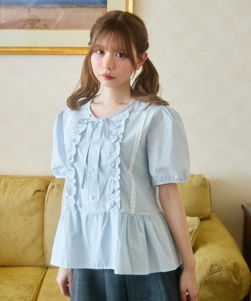 TITTY&CO.2026SS collection ♡フリルリボンが可愛いフェミニンペプラムブラウス♡ [detail] フロントのフリルとリボンディテールが目を惹く、ガーリーなペプラムブラウス。胸元から裾にかけてあしらわれたフリルが、コーディネートに華やかなアクセントをプラスします。ウエスト切り替えのペプラムシルエットがふんわりと広がり、女性らしい柔らかな印象を演出。程よいボリュームのパフスリーブもポイントになり、フェミニンな雰囲気をより引き立ててくれます。一枚で着映えするデザインで、上品な甘さを楽しめるブラウスです。 --------------------------裏地:なし 透け感:あり 伸縮性:なし生地の厚さ:普通-------------------------- [styling] ミニスカートやフレアスカートと合わせることで、ガーリーなフェミニンスタイルに仕上がります。ハイウエストボトムと合わせることで、ペプラムシルエットが引き立ちスタイルアップした着こなしに。デニムやパンツと合わせれば、甘さを程よく抑えたカジュアルMIXコーデも楽しめます。ロングブーツやパンプスを合わせることで、より女性らしい印象のスタイリングが完成します。 ※照明の関係により、実際よりも色味が違って見える場合がございます。 また、パソコン・スマートフォンなどの環境により、若干製品と画像のカラーが異なる場合もございます。 予めご了承くださいませ。予めご了承くださいませ。 ※画像の商品はサンプルです。 実際の商品と仕様・加工・サイズが若干異なる場合がございます。 また、生産時期により、サイズやカラーに誤差が生じる場合がございます。 予めご了承くださいませ。 ※返品・キャンセルについて 着用、洗濯後の返品、交換は致しかねます。 商品到着後、着用前に商品を確認して頂きますようお願い致します。 【商品のお気に入り登録】 完売カラーの再入荷や、セール通知などお得な情報を受け取ることができます。 ぜひご登録下さい♪ 【ブランドのお気に入り登録】 新作入荷や再入荷、セールやクーポンイベントなど注目のブランド情報を受け取ることができます。 ぜひご登録ください!!