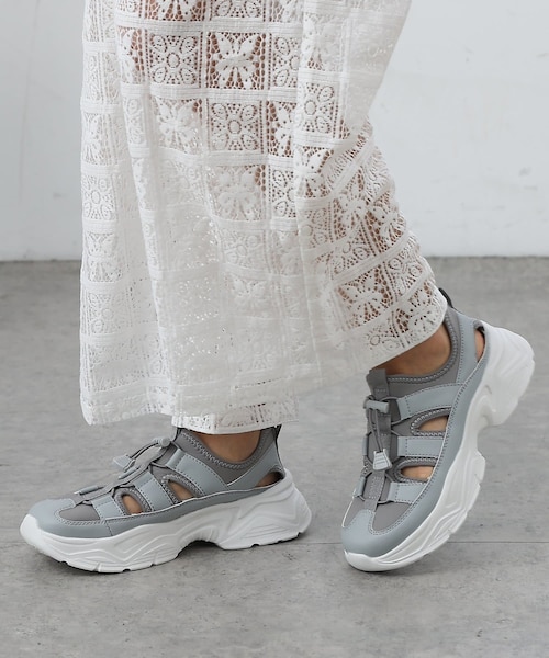 【抜け感×厚底でスタイルアップ見え】スニーカーの安定感とサンダルの軽やかさを兼ね備えた一足。ボリュームのある厚底ソールで、さりげないスタイルアップを叶えながら、歩きやすさも兼ね備えた安定感のある履き心地です。ドローコード仕様で脱ぎ履きも簡単にでき、足にフィットする快適な履き心地を実現。サイドのカットデザインが抜け感をプラスしつつ通気性も良く、フェスやアクティブなシーンでも活躍します。カジュアルコーデはもちろん、ワンピースやスカートと合わせたラフなスタイリングにもおすすめです。【商品ポイント】・ スニーカー感覚で履けるフィットデザイン・ドローコード仕様で脱ぎ履きが楽ちん・スタイルアップと快適な履き心地を両立----------------------------------------------------■素材甲材:合成皮革、ポリエステル底材:合成底----------------------------------------------------※着用、お取り扱いの際は、商品についている品質表示とアテンションタグを必ずご確認下さい。※商品タグに記載されている商品名がWEBでの表記名と異なる場合があります。※実際の商品と仕様、加工、サイズが若干異なる場合がございます。※照明の関係により、実際よりもやや明るく見える場合がございます。またパソコンなどの環境により、若干製品と画像のカラーが異なる場合もございます。予めご了承くださいませ。【お気に入り登録】してお得な情報をCHECK!!・「商品のお気に入り登録」で再入荷通知や、ラストの通知、セール通知も受け取ることができます。・「ブランドのお気に入り登録」で新商品や再入荷など、お得な情報を受け取ることができます。