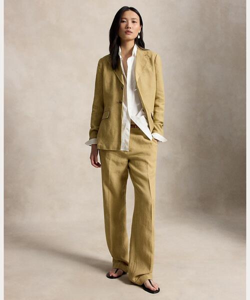 リラックス感のあるストレートフィットに仕立てたハイライズのパンツ。デラヴェリネンで丹念に仕上げ、特別な工程でヴィンテージ風の特性を実現。プレス仕上げのクリースライン、ボタン付き玉縁ポケット、折り返しの裾など、メンズウェア風のディテールが際立つアイテム。 ・ハイライズ / ヒップと太ももにかけてフィット、ストレートレッグ / くるぶし下丈。 ・ベルトループ / かぎホック留めのジップフライ。 ・フロントウエストに斜めポケット2つ / ウエスト背面にボタン付き玉縁ポケット2つ。 ・ウエスト背面にダーツ / 両脚の前後にクリースライン / 折り返しの裾。 ・裏地なし。 ・モデル身長178cm、着用サイズ4。 ※商品の色味は、光のあたり具合など諸条件により色感が多少異なって見える場合がございますので予めご了承下さい。 ポロ ラルフ ローレン