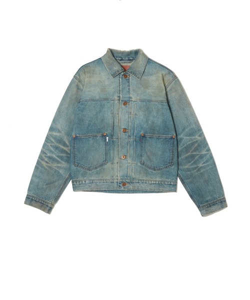 2023AWから立ち上がる新たなデニムライン、 MODERN DENIM シリーズのコンセプトを取り入れたジャケット。古典的な意匠を残しつつ、無駄を削ぎ落とし洗練されたデザインの提案。ボックスシルエット。生地は、”JIMI CLOTH” 岡山は井原市に本社を構えるクロキ株式会社との協業によって新たに開発された、オリジナルの左綾デニム”JIMI CLOTH”を使用。 縦糸にはジンバブエコットン7番手を使用し、ピュアインディゴにて染色。 緯糸は同じくジンバブエコットン7番手を使用。12.8oz 一般的なデニム生地はインディゴ染色した縦糸と、染色加工を施さない生成色の緯糸を用いて織られますが、 ライトベージュに染めた緯糸を打ち込むことで、色の交わりに深みを演出しています。 最も特徴的な点は、左綾で製織している点です。 左撚りの糸に対して、左綾で製織することにより、糸の撚りが締まり、畝(綾目)が立ちます。 これにより、右綾のラフな印象と比較すると、左綾は表面が均一になり、落ち着いた光沢や柔軟な質感が生まれます。 加えて、畝が立つことで、経年によるアタリが出現しやすくなり、際立ったタテ落ちを得ることができます。