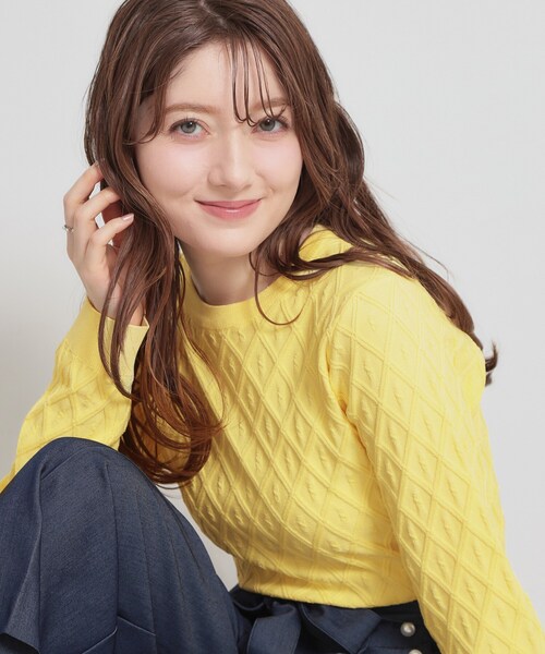 ▼▼気になるアイテムはハートマークをクリック♪▼▼ 是非お気に入り登録してチェックしてください♪ ダイヤ状に繰り返される柄が全体に入ったニット ~POINT~ 凹凸感のある柄なのでほどよく体にフィットし、体のラインが目立ちにくくなっています。 シンプルなデザインなのでアクセサリーやスカーフなど、小物と一緒にスタイリングをお楽しみください。 【素材】 さらりとした糸で、少しストレッチが効いているので着心地がよく、型崩れもしにくいです。 ※照明の関係により、実際よりも色味が違って見える場合があります。また、パソコン・スマートフォンなどの環境により、若干製品と画像のカラーが異なる場合もございます。 【スタッフコメント】 shino(164 ) カーディガンと同シリーズのダイヤ柄ニット。 一枚で着ても着映えする存在感があり、シンプルなボトム合わせでもサマになります。 柔らかな着心地でデイリー使いしやすく、ジャケットのインナーにも◎。 きれいめにもカジュアルにも使える、着回し力の高い一枚です。 【26SS NEW ARRIVAL】 【26SS NEW COLLECTION】 モデル情報:身長163cm B81 W56 H82 着用サイズ:38(M) 店舗へのお問い合わせ商品番号:508-15038 ●製品寸法: 36(S):着丈51cm B80cm 袖丈57cm 肩幅35cm 38(M):着丈52cm B84cm 袖丈58cm 肩幅36cm 42(LL):着丈54cm B92cm 袖丈59cm 肩幅38cm 備考: