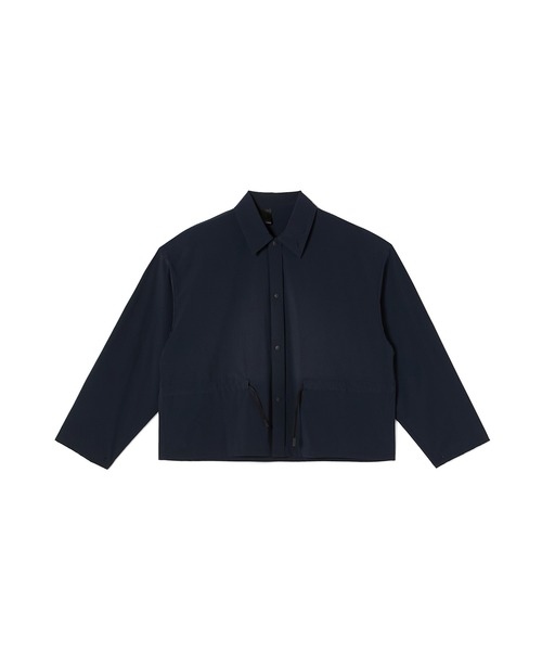 【SPRING2026 N.HOOLYWOOD COMPILE】 デザイナーがインスピレーションを求めて訪れたのは、初めての南アフリカ。長い歴史を内包しながらも、洗練された空気が漂う都市ヨハネスブルグ。一方、サファリでは野生の動物たちが日常の風景として息づく。ランドクルーザーで駆け抜けたオフロードの先に宿る、生命の力強さに深く心を動かされた今回の旅。 大地の乾いた空気が肌に残す感触、力強く美しい文様。旅の中で出会った、穏やかであたたかな人々。アフリカの感覚的な断片が、柔らかな色彩のリズムとなりコレクションに落とし込まれました。また、実用性を備えたサファリジャケットや作業着は、機能素材とクラシックなディテールを組み合わせながらドレッシーでソリッドに再構築。都市、自然、動物、記憶──旅から得た多様な感覚を編み込んだコレクションが完成しました。 ・サファリジャケットから着想を得た、ショートブルゾン。 ・スリーブにはエルボパッチ付き。フロントは生地の質感とあわせたマットなドットボタンを採用。襟に付属したボタンにより、スタンドカラーとしても着用が可能。袖口にドットボタンを、ウェストには先端にレザーを配したオリジナルスピンドルを内蔵し、細かなシルエット調整が可能。配色ステッチを施し、奥行きのある表情に。 ・程よくゆとりを持たせたボックスシルエット。スクエアカットのショート丈。 ・20デニールのナイロンとポリウレタン糸を使用した、伸縮性の高い4WAYストレッチ素材。接触冷感性と撥水加工により、あらゆる環境下で快適な着心地を実現。軽量でハリのある質感が美しいシルエットをキープ。機能性とフォルムの美しさを兼ね揃えた高機能素材。 Model: 178cm/60kg Wearing size 38 ・A short blouson inspired by the safari jacket. ・Elbow patches on sleeves. Front closure with matte snap buttons matching the fabric texture. Collar tab for stand-collar styling. Cuffs with snap buttons, waist with an internal spindle cord finished with leather tips, allowing fine silhouette adjustment. Contrast stitching for depth. ・Relaxed box silhouette. Square-cut, short length. ・A 4-way stretch fabric made from 20-denier nylon and polyurethane. It offers a cool touch and water-repellent finish for comfortable wear in various conditions. Lightweight and structured, it helps maintain a clean silhouette. A high-performance material that balances function and form.