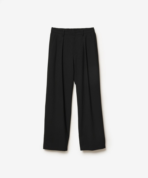 上品で軽やかな1タックワイドトラウザー ■素材 上質なメリノウールに、繊細な光沢とハリ感をもたらすトリアセテートブレンドのサイロストレッチ糸を交織したサマーウール・ストレッチトロピカル素材を採用。 高温多湿な季節にも快適な通気性と軽快な着用感を実現しつつ、ウールならではのしなやかなドレープと自然なストレッチ性を兼ね備えています。トリアセテートが持つ反発性と形態安定性により、着用中や移動時のシワを抑え、イージーケア性にも優れた仕上がりです。 表面は微光沢を帯び、さらりとしたタッチと高級感のある質感が特徴。都会的で洗練された印象を演出します。 ■デザイン 深めに取られたタックが、腰まわりに自然なゆとりと柔らかなドレープを生み出すワイドトラウザー。 裾へと緩やかに広がるシルエットは、軽やかでありながらも品格を保ち、歩くたびに美しいラインを描きます。 ウエストは後ろ半分をゴム仕様とすることで、さりげないリラックス感をプラス。フィットと快適性のバランスに優れ、着用者の動きにしなやかに寄り添います。 無駄を削ぎ落としたミニマルなデザインが、素材の質感とシルエットの美しさを際立たせる一着。 都会的でありながら、どこか余白を感じさせるモダンなトラウザーです。 ■SET UP 同素材にていくつかのジャケットやシャツをご用意しています。好みや気分、TPOに合わせて幾通りもセットアップの組み合わせが可能。 カジュアルだけでなく、ビジネスカジュアル、出張、トラベル、パーティーなど様々なシーンで着用いただけるユーティリティーなカラーレスジャケットに仕上げています。 AG61-063 - 2B JACKET AG61-065 - COLLARLESS JKT AS61-088 - LONG SLEEVE SHIRT 【ATTACHMENT / アタッチメント】 99年に熊谷和幸により”ATTACHMENT”が設立。 服を、着る人の魅力や個性、内面を引き出す“付属”として捉え、 シルエットの計算と、素材使いから生まれる着心地の良さ、 クラフツマンシップが叶える緻密な仕立て、 ディテールをそぎ落としたシンプルで普遍性のあるウェアを提案しています。