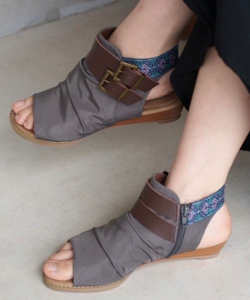 程よい高さのウエッジソールでホールド感のあるサンダル。光沢感のある生地と織りテープがアクセントになり、エスニックから綺麗めコーデまで幅広く活躍します。 ※こちらの商品は1点1点職人による手作りとなります。その為、形や色合いなど若干異なる場合がございます。あらかじめご了承ください。 ※サイズには個人差がございます。あくまで目安にお考えください。 Amina Collection Co.,LTD.
