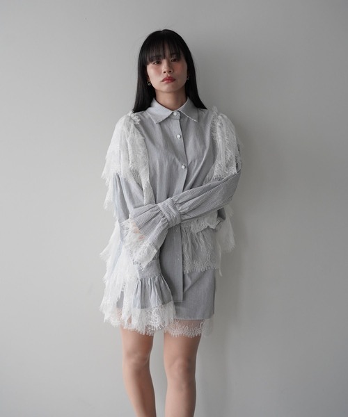フロントボタン仕様のトップスと、ウエストゴム仕様のショートパンツを組み合わせたセットアップ。 上下セットで着用でき、コーディネートに悩まずスタイリングが完成するアイテムです。 トップスは程よくゆとりのあるシルエットで、全体をすっきりと見せてくれます。 縦ラインが印象的なストライプ柄に、サイドや袖口へレース切替を施し、シンプルな中にも存在感のある仕上がりに。 ショートパンツはウエストゴム仕様で、リラックスした着用感を意識しています。 セットでの着用はもちろん、それぞれ単品でも活躍。 幅広いスタイリングに取り入れやすく、デイリーからちょっとしたお出かけまで対応できるセットアップです。 詳細補足 仕様:SET UP TOPS フロントボタン・ショートパンツ ウエストゴム 伸縮性:なし 透け感:なし 光沢:なし 裏地:なし 厚さ:普通 モデル情報 model:160cm 【SANSëLF】 ▼お気に入り登録をおすすめします▼ ♡をクリック! お得なセール情報や、人気完売商品の再入荷情報 ラスト1点の通知など、耳寄りなお買い得情報をいち早く受ける事ができます。 ブランド【SANSëLF】のお気に入り登録もご一緒にお願い致します。 取扱注意事項 ※サイズは、測定方法と測定者によって多少の誤差がありますのでご了承下さいませ。 また体型によって、サイズ感に個人差がございます。(平置き採寸)※商品によってはシワがつきやすく、 畳みジワや折りジワなどが強く出る場合がございます。 その際は加湿した風呂場に数時間干すか、スチームアイロンでのお手入れをお勧めしております。 ※生地の素材上、においが気になる場合がございます。その際は陰干しして頂くと、ほとんど感じにくくなります。 ※レース等の繊細な素材を使用している場合には、お取り扱いにご注意下さい。 ※デニムを使用した製品は、インディゴ染めをしています。汗や摩擦により移染しやすいので、 白色、淡色の組み合わせや重ね着はお避け下さい。 ※ニット素材を使用した製品は、重みで伸びやすくなりますのでハンガーでの保管はお控えください。 ※お洗濯の際には、品質表示の指示に従ってください。必要であれば専門店にご相談ください。 家庭でご洗濯できる商品に関しては、洗濯専用ネットをご使用の上、個別での洗濯をお勧めいたします。 お色物は、色移りする可能性がございます。 ※着用画像は撮影状況や光によって、多少異なる場合がございますので、置き画像をご確認下さい。 ※2023年7月1日より、環境に配慮した取り組みの一環として、紙のアテンションタグを廃止しております。