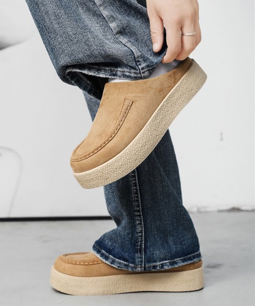 ◆WESTBOY COLLECTION◆ やわらかなスエード調素材がナチュラルな雰囲気を演出するスリッポンサンダル。 シンプルでミニマルなデザインに、程よい厚みのソールを組み合わせた快適な一足です。 さっと履けるスリッポンタイプで、デイリー使いにもぴったり。 カジュアルコーデからリラックススタイルまで幅広く活躍します。 詳細補足 ソール:かかと部分4cm サイズ感:普通 サイズ詳細 41:25.5cm-26.0cm相当 42:26.0cm-26.5cm相当 43:26.5cm-27.0cm相当 44:27.0cm-27.5cm相当 【WB ORIGINALS(ウエストボーイオリジナルズ)】 オーバーサイジングを中心に、時代のニーズに合った新たなトレンドを展開。 “STREET” “MODE” “SPORT”を取り入れ、独自の世界観で新たな価値観を提案するオリジナルブランド。 ■取扱注意事項■ ※サイズは、測定方法と測定者によって多少の誤差がありますのでご了承下さい。(平置き採寸) また足の形等によって、サイズ感に個人差がございます。 ※生地の素材上、においが気になる場合がございます。 その際は風通しの良い所で陰干しして頂くと、ほとんど感じられなくなります。 ※湿気が少なく、日光等が直接当たらない通気のよい場所に保管してください。 ※水に濡れてしまった場合は、柔らかいきれいな布で素早く水気を取り、陰干ししてください。 ※ご購入の際は色・サイズを必ずお確かめの上、ご購入下さいませ。 ※商品外装箱につきましては商品を保護する梱包材の為、擦過痕や細かい傷、破れ、へこみ等が入荷した時点で生じている場合がございます。 ※上記のような商品につきましては商品本体の破損と判断せず、仕様販売とさせて頂いておりますので、商品外装箱の痛みを理由とした交換・返品につきましては不良品対応の対象外とさせて頂きます。 ※お使いのモニターや端末により、質感・色合いが実際の商品と異なって見える場合がございます。 ※着用画像は撮影状況や光によって、多少異なる場合がございますので置き画像をご確認下さい。 ※レザー製品(合皮も含む)は、素材の特性上徐々に劣化し固くなったり表面がひび割れてくることがありますのでご了承ください。 また、熱に弱いためアイロンやドライヤーはかけないでください。
