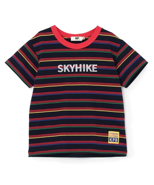 イレギュラーピッチのマルチボーダーのTシャツ。胸のロゴは、毛並みで立体感のある刺しゅうで表現されていて、触れても楽しい仕上がりです。後ろ身に付いたフラップ付きの配色ポケットが、遊び心あるデザインアクセント。デニムやカラーのハーフパンツなどと合わせても、きれいめカジュアルコーデが決まります。