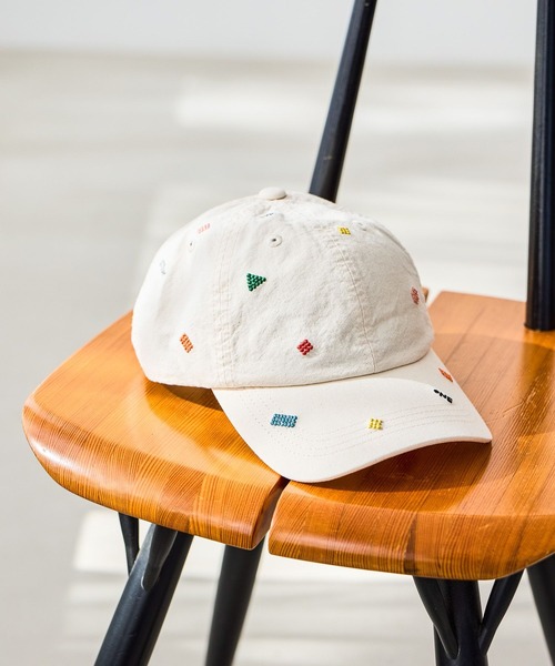 立体感のある刺繍を散りばめたコットンキャップ 薄手のコットンキャンバス生地を使用し、軽く仕上げたベーシックな形状のキャップです。 立体感のある刺繍で小さなモチーフを全体に散りばめ、アクセントをプラスしました。 生地と同系色の刺繍を施したブラウンと、カラフルな刺繍が映えるアイボリーの2色展開です。 春夏のデイリーなコーディネートに馴染みやすいアイテムです。 ーーー キャップ 帽子 コットン ーーー