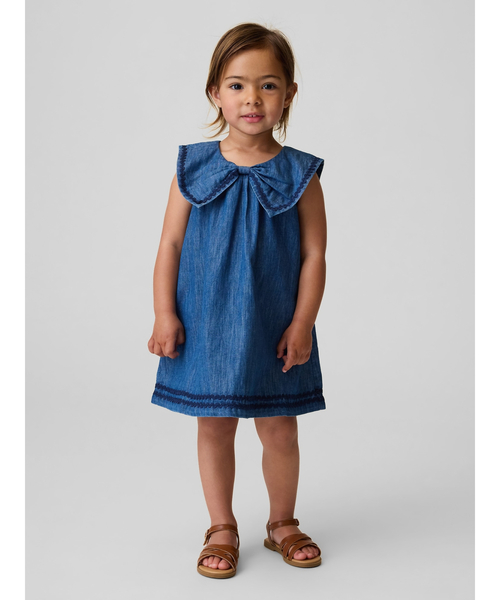 柔らかくしなやかな質感のコットンデニムワンピース セーラーカラー、後ろでボタン留め ノースリーブ サステナビリティ: このワンピースは独自の洗浄技術「ウォッシュウェル」を使って生産しています。「ウォッシュウェル」は従来の方式に比べて20%以上の節水を実現する洗浄技術です。 この商品は、RISE (Reimagining Industry to Support Equality) を通じてジェンダー平等と女性のエンパワーメントを精力的に推進する工場で生産されています。 *商品タグに記載の価格とサイト上の販売価格が異なる事があります。 【Gap ギャップ】1969年にアメリカ・サンフランシスコで創業以来、世界的なカジュアルファッションブランドとして、常にモダンなアメリカンカジュアルを提案し続けています。