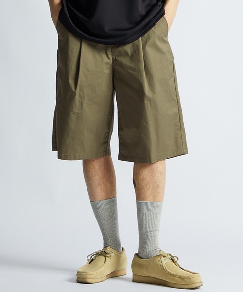 "上品に穿けるC/Nストレッチショーツ" 【生地】 コットンとナイロンを混紡したC/Nストレッチ素材を使用。 綾織りならではの程よい光沢感があり、カジュアルながら上品な表情が特徴です。 ストレッチ性も備え、ドライタッチでさらっとした快適な穿き心地に仕上げています。 【デザイン・ディテール】 フロントにワンタックを入れることで腰まわりに程よいゆとりをプラス。 膝下にかかる絶妙なレングスと、程よいボリューム感のシルエットでリラックス感のある一本に仕上げました。 Tシャツやシャツなど様々なトップスと相性が良く、デイリーからリゾートシーンまで幅広く活躍するショーツです。 ※サンプルを着用しておりますので、実際の商品と仕様、加工、サイズが若干異なる場合がございます。 ※撮影環境による光の当たり具合やパソコン・スマートフォンなどの閲覧環境によって、実際の色味と異なって見える場合がありますので予めご了承ください。 ※商品の色味は商品単体で撮影した画像をご参照ください。