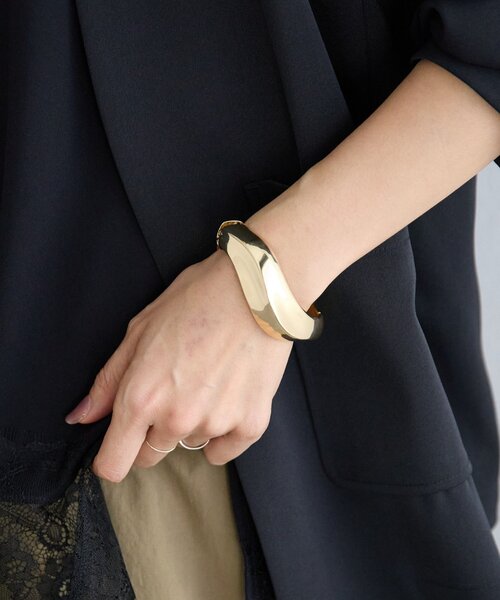 ■アイテム 存在感のあるボリューム感と、ニュアンスのあるフォルムが目を惹くワイドバングル。 シンプルなコーディネートに取り入れるだけでアクセントになるアイテムです。 ジャケットやブラウスの袖をきゅっとたくし上げたときに、手元をさりげなく華やかに演出してくれます。 素肌につけるのはもちろん、カットソーやシャツの上から重ねるとこなれた印象に。 開閉可能なバネ仕様で着脱しやすく、デイリーに取り入れやすいのも嬉しいポイントです。 ※こちらは《LIVETART》のタグがつきます。 ■素材 合金 ※着用時は、必ず取扱い表示・タグをご確認の上、お取り扱い下さい。 《LIVETRT/リヴェタート》 BEARDSLEYのインブランドLIVETART(リヴェタート) 美しい刺繍やレース、しなやかなフォルム、鮮やかな色彩、大胆なプリント。 アートに触れるような心地よい緊張感であらたまった場所へも気負いなく身につけられる。 日常と非日常をつなぐ、いつもより少し高揚感に包まれる服。 《予約商品について》 ・サンプルの為、素材情報については企画段階の情報を記載しております。公的機関での試験データ結果を受け、量産にあたり混率の変更が発生する場合がございますので、ご了承くださいませ。 ・サンプルでの撮影、計測をしております。商品の仕様が一部変更になる場合がございます。 ・撮影サンプル品はブランドタグがついておりません。製品にはタグがつきますので、製品の表に縫い糸が見える場合がございます。 ・工場の生産の都合上、納期が変更になる場合がございます。検品や輸送の関係で、発送日が前後しますのでご了承ください。また、入荷状況により、お客様への発送が店頭販売より遅れる場合もございます。 ・店頭に陳列していた商品も含まれる場合がございます。 《商品画像について》 ご覧頂いている商品の写真につきましては、できるだけ実物の色に近くなるように努めておりますが お使いの環境(モニター、ブラウザ等)の違いにより、色の見え方が実物と若干異なる場合がございます。 予めご了承ください。 《ハートをタップして商品のお気に入り登録》 【ハートをタップ】登録カラーの商品の「残りわずか」「再入荷」「値下げ」通知を受け取ることができます。 【各ショップアプリにてブランドフォロー】新商品などの入荷情報、最新のニュースやお得な情報を受け取ることができます。