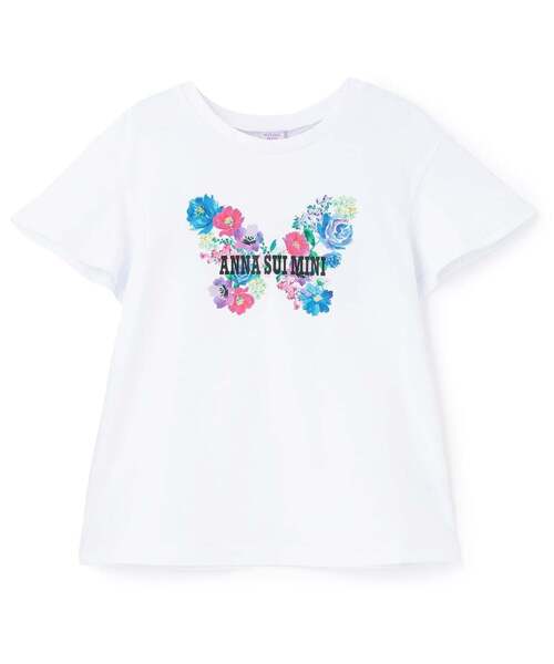 お花で表現した鮮やかな蝶のプリントが目を引く半袖Tシャツです。 ベースはどんな装いにも馴染みやすいシンプルなモノトーンカラー。 触れたときに冷たく感じる接触冷感素材を使用しています。 やわらかい綿100%の生地で着心地が良く、日常のお出かけ着におすすめです。 《ANNA SUI miniではサスティナブルの取り組みとして、「お下がり」を応援しています。想い入れのある1着を長く着られるよう、2名分のお名前が書けるネームタグ付きです。》 【透け感】透けない 【生地の厚さ】普通 【伸縮性】あり 【裏地】なし 【ポケット】なし