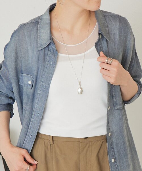 ■アイテム 襟元のチュール切り替えが一枚でニュアンスのあるタンクトップ。 シンプルながらもさりげないデザインが、コーディネートのアクセントになります。 U字に開いたネックラインがデコルテをすっきりと見せ、アクセサリーも映えるデザインに。 チュール部分も伸縮性に優れており、リラック感のある快適な着心地。 ご自宅で手洗い可能と取り扱いが簡単なのが嬉しいポイントです。 ■素材・洗濯表示 素材 本体:再生繊維(セルロース)92% ポリウレタン8% 別布:ポリエステル100% 洗濯表示:手洗い可 ※着用時・洗濯時は、必ず取扱い表示・タグをご確認の上、お取り扱い下さい。 ---------------------------------- 伸縮性:あり 光沢:なし 厚み:うすい 透け感:あり ---------------------------------- 《お取り扱い上のご注意》 ・タンブル乾燥不可 《予約商品について》 ・サンプルの為、素材情報、洗濯表示については企画段階の情報を記載しております。公的機関での試験データ結果を受け、量産にあたり混率や洗濯方法の変更が発生する場合がございますので、ご了承くださいませ。 ・サンプルでの撮影、計測をしております。商品の仕様が一部変更になる場合がございます。 ・撮影サンプル品はブランドタグがついておりません。製品にはタグがつきますので、製品の表に縫い糸が見える場合がございます。 ・工場の生産の都合上、納期が変更になる場合がございます。検品や輸送の関係で、発送日が前後しますのでご了承ください。また、入荷状況により、お客様への発送が店頭販売より遅れる場合もございます。 ・店頭に陳列していた商品も含まれる場合がございます。 《商品画像について》 ご覧頂いている商品の写真につきましては、できるだけ実物の色に近くなるように努めておりますが お使いの環境(モニター、ブラウザ等)の違いにより、色の見え方が実物と若干異なる場合がございます。 予めご了承ください。 《ハートをタップして商品のお気に入り登録》 【ハートをタップ】登録カラーの商品の「残りわずか」「再入荷」「値下げ」通知を受け取ることができます。 【各ショップアプリにてブランドフォロー】 新商品などの入荷情報、最新のニュースやお得な情報を受け取ることができます。