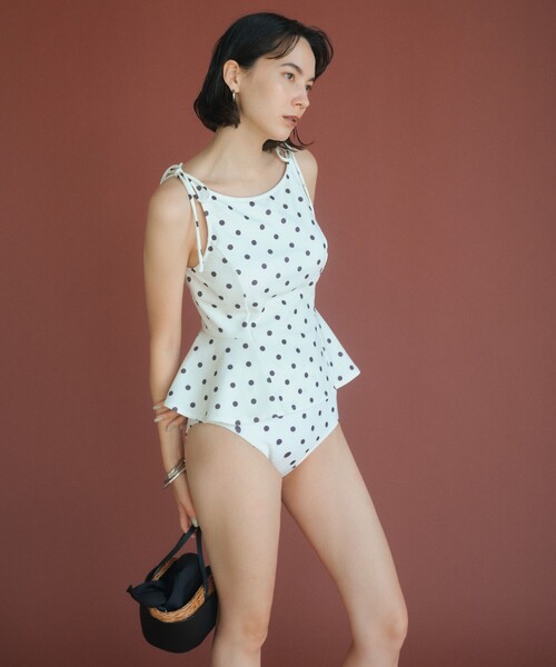 「大人が着られるスイムウェア」 ハイネックWリボンフレア&ショーツ ドット柄 オフホワイト 水着 ■デザイン 「大人が着られるスイムウェア」が今シーズンも登場! 【飽きずに着られる程よいトレンド感】 今年はシャーリング・ハイネック・リボンディテールなどのトレンドキーワードを意識してお作りしました。 【シンプルで大人っぽいカラー】 ただシックなのではなく、ライトカラーやビビットカラーでも大人らしさを感じる色味を選んでおります。 また素材にもこだわり凹凸感を出すことでより雰囲気のある仕上がりに。 【気になる部分を隠しつつ女性らしい身体のラインを表現するカバー力】 全部を隠すのではなく、 デザインディテールやカッティングを調整することで、きれいなボディラインを演出します。 こちらの3つをテーマに開発した、こだわりのスイムウェアです。 ハイネックで肩をリボンで結ぶ、少しフェミニンな雰囲気の新作。 フレアのシルエットですが、サイド部分がより広がる形なので、 甘くなりすぎず着用していただけます。 表面感のある生地にトレンドのドット柄をプリントした、こだわり素材。 大きすぎず、小さすぎないドット柄が存在感はありつつも大人っぽい印象です。 ・取り外し可能なパット付き 【同素材】 ・ラッシュショーツ 対象品番:36616000016 ・ハイネックワンピース 対象品番:36616000019 【同柄・色違い】 ・ハイネックWリボンフレア&ショーツ(BLACK) 対象品番:36616000007 【同デザイン】 ・ハイネックWリボンフレア&ショーツ無地 対象品番:36616000003 ================================ 裏地:あり 機能性:UVケア(紫外線遮蔽率90%以上) ================================ 【注意事項】 ※画像の商品はサンプルです。 実際の商品と色味、仕様、加工、サイズ、素材等が若干異なる場合がございます。 ※工場の生産の都合上、納期が変更になる場合がございます。発送日の前後についてはあらかじめご了承ください。 ※入荷状況により、お客様への発送が店頭販売より遅れる場合もございます。 ※商品に「取り扱い上の注意書き」、「洗濯表示」がございます場合は、使用前に必ずご確認ください。 ※商品画像は、光の当たり具合やパソコンなどの閲覧環境により、実際の色味と異なって見える場合がございます。あらかじめご了承ください。 ※商品の色味の目安は、商品単体の画像をご参照ください。 店舗へお問い合わせの際は、全国のgreen label relaxing各店舗まで下記の品名/品番をお申し付けください。 品名:★CFC ハイネックWリボンフレアDOT W 品番:36616000021