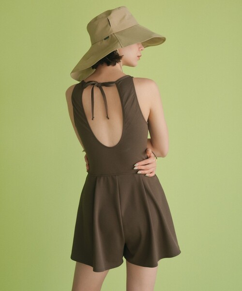 「大人が着られるスイムウェア」 ジョーゼット風 バックオープン オールインワン 水着 ■デザイン 「大人が着られるスイムウェア」が今シーズンも登場! 【飽きずに着られる程よいトレンド感】 今年はシャーリング・ハイネック・リボンディテールなどのトレンドキーワードを意識してお作りしました。 【シンプルで大人っぽいカラー】 ただシックなのではなく、ライトカラーやビビットカラーでも大人らしさを感じる色味を選んでおります。 また素材にもこだわり凹凸感を出すことでより雰囲気のある仕上がりに。 【気になる部分を隠しつつ女性らしい身体のラインを表現するカバー力】 全部を隠すのではなく、 デザインディテールやカッティングを調整することで、きれいなボディラインを演出します。 こちらの3つをテーマに開発した、こだわりのスイムウェアです。 ウエストの切り替えやハイネックデザインが身体のラインをきれいに見せてくれる、 人気のオールインワン。 バックオープン×華奢なリボンも大人かわいいポイント。 細やかな凹凸感があるジョーゼット風の生地を使用して、上品な雰囲気に仕上げています。 ・取り外し可能なパット付き 【同素材 ジョーセット風シリーズ】 ・ペプラムビスチェ&ショーツ(BLACK・DK.BROWN) 対象品番:36616000000 ・ペプラムビスチェ&ショーツ(OFF WHITE) 対象品番:36616000020 ・サーフショーツ 対象品番:36616000014 ================================ 裏地:あり 機能性:UVケア(紫外線遮蔽率90%以上) ================================ 【注意事項】 ※画像の商品はサンプルです。 実際の商品と色味、仕様、加工、サイズ、素材等が若干異なる場合がございます。 ※工場の生産の都合上、納期が変更になる場合がございます。発送日の前後についてはあらかじめご了承ください。 ※入荷状況により、お客様への発送が店頭販売より遅れる場合もございます。 ※商品に「取り扱い上の注意書き」、「洗濯表示」がございます場合は、使用前に必ずご確認ください。 ※商品画像は、光の当たり具合やパソコンなどの閲覧環境により、実際の色味と異なって見える場合がございます。あらかじめご了承ください。 ※商品の色味の目安は、商品単体の画像をご参照ください。 店舗へお問い合わせの際は、全国のgreen label relaxing各店舗まで下記の品名/品番をお申し付けください。 品名:★CFC GGバックオープンAIO 品番:36616000001