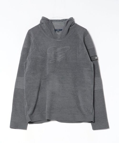 12ゲージ軽く柔らかいモールストレッチパーカー。 一手間かけたプレーティング加工編みで仕上げたプルオーバーパーカー。 [プレーティング加工] 軽くて暖かい特性のモール糸を表と裏で糸の色を変えて表情豊かな編み柄に仕上げています。 耐久性に優れ柔らかい風合いが特徴です。