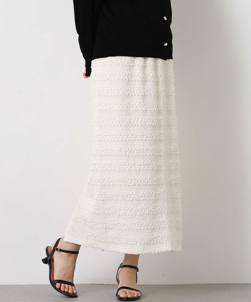 クシュクシュっとシャーリングを寄せたようなレース生地が繊細で女性らしいレーススカート。 タイトなシルエットですが、伸縮性のある素材でウエストゴムの穿きやすい仕様。 デニムシャツやスウェットなどで甘辛ミックスなスタイリングがオススメ。 ************************** 透け感:透けない 伸縮性:あり 生地の厚さ:普通 裏地:あり ポケット:なし ************************** ※商品画像は、光の当たり具合や使用しているパソコンのモニターやスマートフォン等の設定により、現物と画像の色味が若干異なる場合もございます。予めご了承ください。 【 お買い物をもっと楽しんでいただく為に 】 ▼商品のお気に入り登録▼ 完売カラーの再入荷や、ラスト1点、セールの通知をお知らせします。 割引クーポンの発行などお得な情報も! ▼ブランドのお気に入り登録▼ 新商品や再入荷など、いち早くグレディブリリアンのお得な情報を受け取ることができます! 【Gready Brilliant】 「ほどよい存在感」を大切にする大人の女性のためのセレクトショップ。