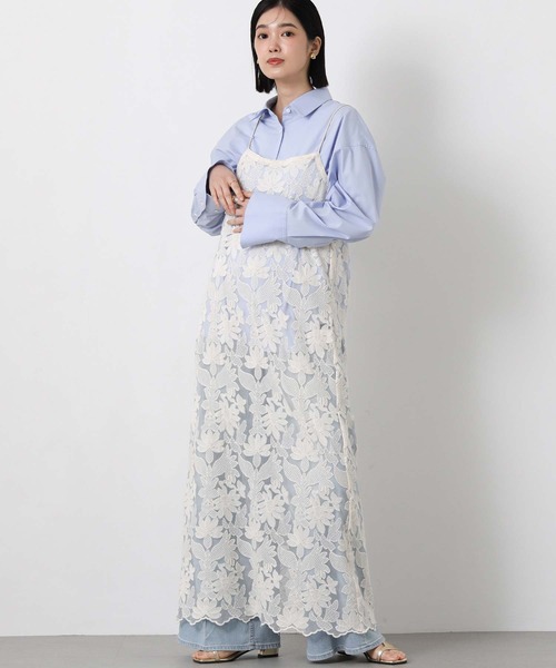 繊細なチュール生地にふんだんに刺繍が施されたキャミワンピース。 アウターを着る時期に華やかさを与えてくれるアイテム。 ワンピースとしてはもちろん、上からトップスを重ねてレーススカートをレイヤードしている様なコーデもオススメ。 ************************** 透け感:透ける 伸縮性:なし 生地の厚さ:普通 裏地:なし ポケット:なし ************************** ※商品画像は、光の当たり具合や使用しているパソコンのモニターやスマートフォン等の設定により、現物と画像の色味が若干異なる場合もございます。予めご了承ください。 【 お買い物をもっと楽しんでいただく為に 】 ▼商品のお気に入り登録▼ 完売カラーの再入荷や、ラスト1点、セールの通知をお知らせします。 割引クーポンの発行などお得な情報も! ▼ブランドのお気に入り登録▼ 新商品や再入荷など、いち早くグレディブリリアンのお得な情報を受け取ることができます! 【Gready Brilliant】 「ほどよい存在感」を大切にする大人の女性のためのセレクトショップ。