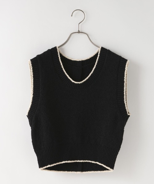 ■素材■ これからの時期でも着心地良く着こなせるサマーニットベスト。 ■デザイン■ 涼しげなノースリーブで、バックスタイルにスリットが入ったベスト。 ボタンがアクセントになり1枚で様になるアイテムです。 ■スタイリング■ 今年トレンドのショート丈なのでワイドなシルエットのボトムや ボリュームのあるスカートがオススメです。 気温が下がった時にはインナーに長袖のシアーカットソーを合わせると 秋までスタイリングを楽しめるようになっています。