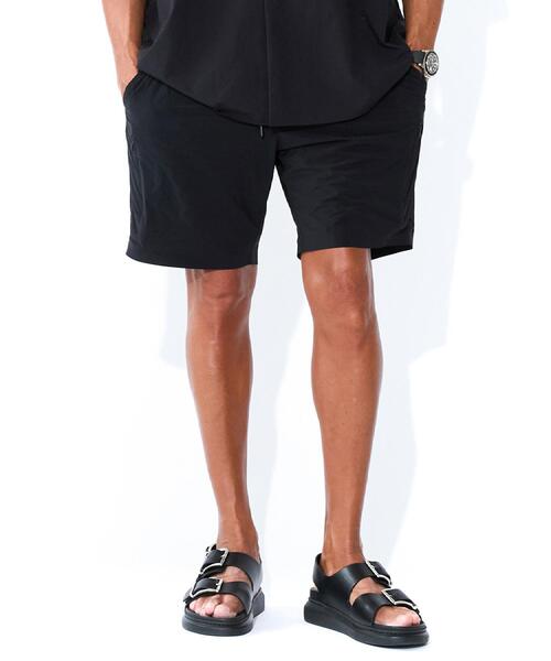 《干場義雅氏×K-3B×DRESSTERIORの三者共作によって生まれた限定スペシャルアイテム》 ●干場義雅氏、K-3B、DRESSTERIORによる、希少なトリプルコラボレーション ●K-3Bが誇る「軽量・高伸縮・ドライタッチ・撥水」を備えた高機能素材を採用 ●複数のジップ付きポケットを配し、小物の携帯に良い利便性を実現 ●同素材のシャツと合わせた、統一感のあるセットアップスタイルが可能 ●アクティブな機能性と、干場氏らしい洗練された良質感が共存するデザイン ●こだわり クリエイティブディレクター・干場氏の監修により、ミリ単位の微調整を重ねた独自のパターンを採用。 足を通した瞬間に、計算し尽くされたシルエットの美しさを実感いただけます。 ウエストはゴムとドローコードを併用した仕様で、リラックスできる穿き心地でありながら、確実なホールド感も兼ね備えています。 右フロントには貴重品の携行に役立つジップ付きインポケットを配置。 さらにヒップにも2つのジップポケットを設けるなど、収納力に長けた機能的なハーフパンツに仕上げました。 ラグジュアリーさとスポーティさが極めて高い次元で融合した、妥協のない一着です。 ●素材 素材には、K-3B(ケースリービー)が独自に開発した機能素材を使用しています。 世界屈指の合繊産地・北陸に拠点を置き、ブランドの母体でもあるカジナイロン社の先端テクノロジーを注ぎ込んで作り上げられました。 ナイロンとポリウレタンを混紡した生地は、驚くほどしなやかな伸縮性を誇ります。 さらりとした質感で洗濯後の乾きも速く、汗ばむ季節でも肌にまとわりつかない清涼な着心地を保ちます。 さらに、撥水機能も備えているため、急な雨を弾くだけでなく、水性の汚れが付着しにくい点も大きな魅力です。 K-3B(ケースリービー)とは・・・ 「現代スーツに、超のつく合理性を。」 あらゆるシーンに対応し、身支度の時間を大幅に短縮する、全天候型のセットアップブランド。 干場義雅氏をクリエイティブディレクターに迎え、世界に誇る日本の合繊産地・北陸のカジナイロン社が持つ最新技術を投入しています。 多忙な現代人のために不要な装 店舗へのお問い合わせ商品番号:086-75803 ●製品寸法: 76(Sサイズ):W76~86cm 股下20cm 前股上27cm 渡り幅33cm 裾幅24cm 79(Mサイズ):W80~90cm 股下20cm 前股上27cm 渡り幅34cm 裾幅24cm 82(Lサイズ):W84~94cm 股下20cm 前股上28cm 渡り幅35cm 裾幅25cm 85(XL):W88~98cm 股下22cm 前股上28cm 渡り幅36cm 裾幅26cm 備考:
