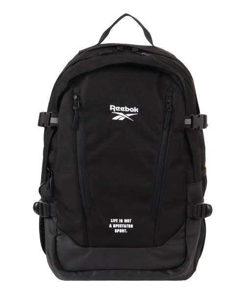スポーツブランド『Reebok』のバックパック 収納⼒に優れた2層式仕様の収納部。軽くて丈夫なポリエステルオックス⽣地を使⽤。 前⾯に縦に⼤きなファスナーポケットを左右2箇所に配置し、財布やカードケース、スマートフォンなどを便利に収納できます。 両サイドにはオープンポケットを配置しペットボトルや折り畳み傘などを収納可能。 内装部分には⼩物を⼩分けにして収納可能なオーガナイザーポケットやノートPCやタブレットを収納できるクッション⼊りポケットを完備。 夜間の安全を配慮した反射素材を正⾯とショルダーベルト部分に使⽤しています。