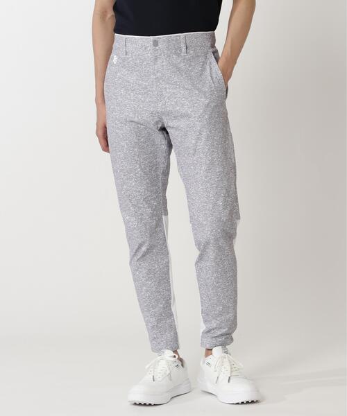 ゴルフから日常まで使いやすいポイント使いのPGロゴがさりげないアクセントになった、Peカチオンメランジ天竺パンツ。 レギュラーポリエステルとカチオンポリエステルを交編したカットソー生地で、2つの糸の特徴を活かしたソフトな風合いで表情のある生地に。 高密度に編むことで布帛ようなハリコシと、カットソーのストレッチ性が融合したボトムにも適した素材です。 また、SORONAという植物由来のポリエステルを使用した環境に配慮した素材でもあります。 屈伸やスイングの動きがスムーズになる切替しを施した立体構造の、スタイリッシュな印象を与えるテーパードシルエットのパンツです。 楽な履き心地を保つイージー仕様のウエストベルトには、ウエストマークが叶うベルトループを付けているのでコーデに合わせて色々な着こなしが可能です。 同じシリーズの[053-6120306]Peカチオンメランジ天竺ジップアップブルゾンと、統一感を出してセットアップコーデをお楽しみいただけます。 PEARLY GATES(パーリーゲイツ) 1989年春にスタート。 メンズ事業部のスタッフたちが、ゴルフを始めることになった。 ところが、自分たちが着たいと思うゴルフウエアがない。 「それならば自分たちで作ろう!」という想いから全ては始まりました。以来、「もっと気軽にもっと楽しくゴルフをしよう」というコンセプトのもと、あらゆる枠組みを超えた新しいゴルフウエアとゴルフ本来の素晴らしさを、パーリーゲイツは提案し続けています。