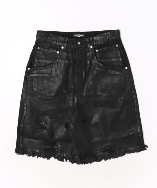 DankeSchon 存在感のある質感が特徴の「11oz RUBBER COATED SHORTS」。 11ozデニムをベースにラバーコーティング加工を施すことで独特の光沢とレザーライクな重厚感を表現した一本です。 ダメージ加工と裾のカットオフ仕様が程よいグランジ感を演出しストリートスタイルにインパクトをプラス。 デニムの無骨さとラバーコーティングの艶感が融合したDankeschonらしい個性的なショーツに仕上がっています。 POINT・11ozデニムにラバーコーティングを施した独特の質感・レザーライクな光沢感と重厚感のある表情・ダメージ加工+カットオフ仕様でグランジな雰囲気・シンプルながら存在感のあるブラックカラー STYLE TIPオーバーサイズのTシャツやグラフィックトップスと合わせたストリートスタイルがおすすめ。 足元はスニーカーやボリュームのあるブーツと合わせることでショーツの重厚感を活かしたコーディネートに仕上がります。 ラバーコーティングによる独特の質感が最大の魅力。 シンプルなスタイリングでも存在感を放ちコーディネートの主役として活躍する一本です。 DankeSchon・・・DankeSchonとは、このブランドの核となるキーワード D digitaliyデジタル式 A Architect創造者 N neologism新表現 K kittenish悪ふざけ E engrossing心を奪う の頭文字を組み合わせたものにドイツ語のSchonを付け、ブランドの意図に賛同してくれる人達に感謝の意味を込め、「DankeSchon(ありがとうの意味)」としている。
